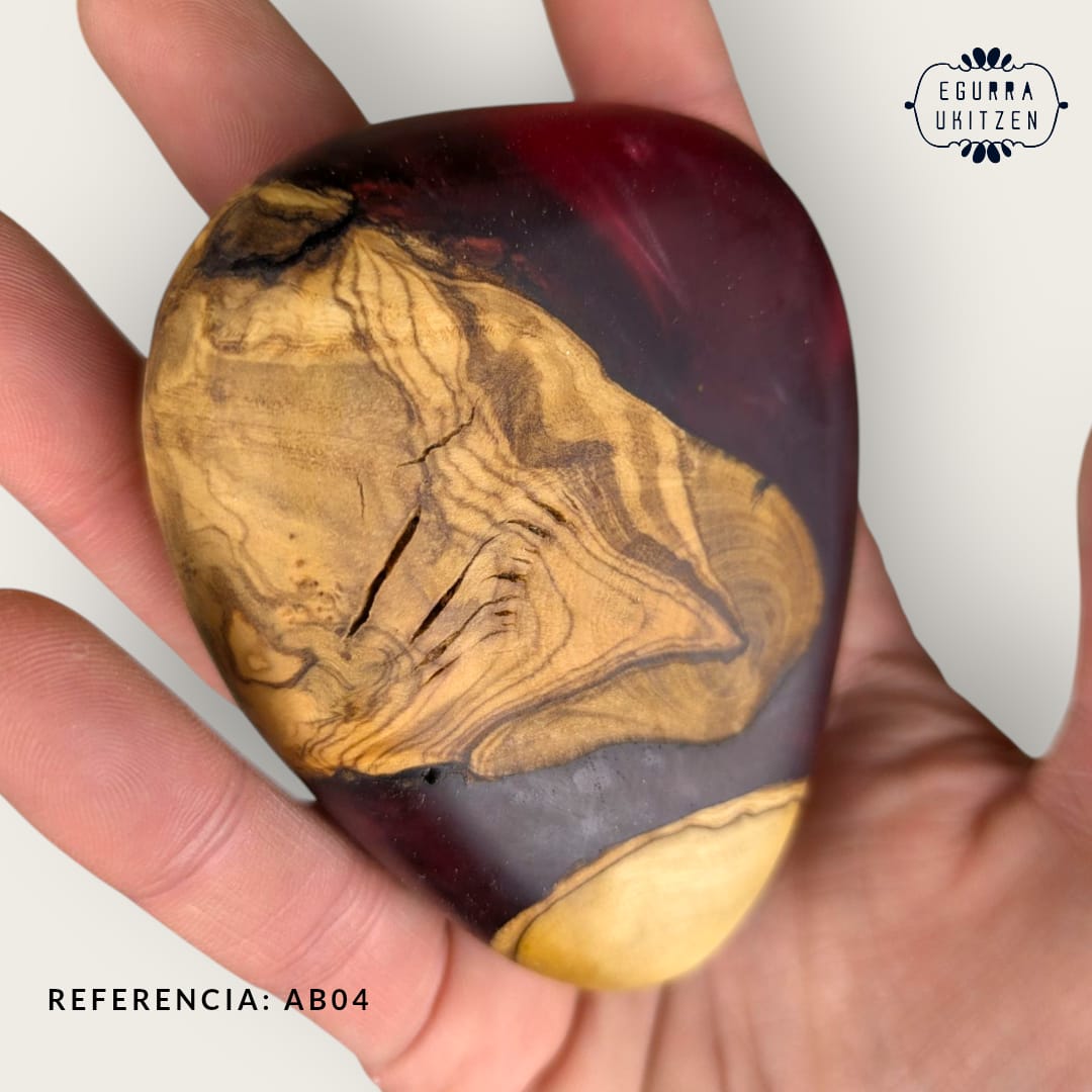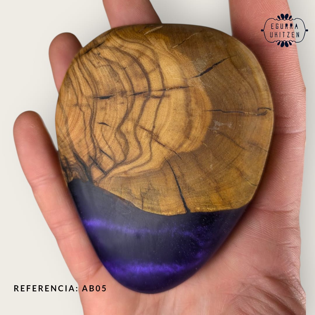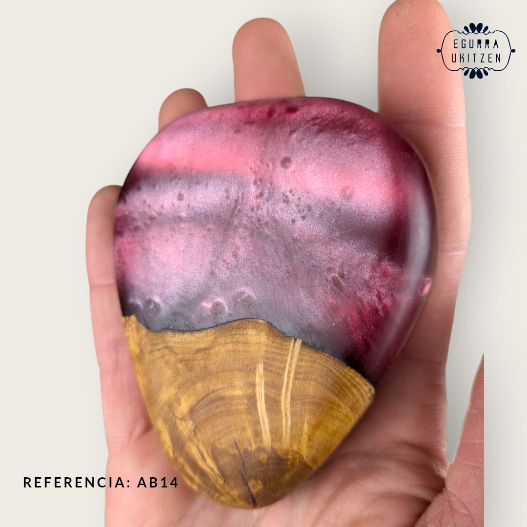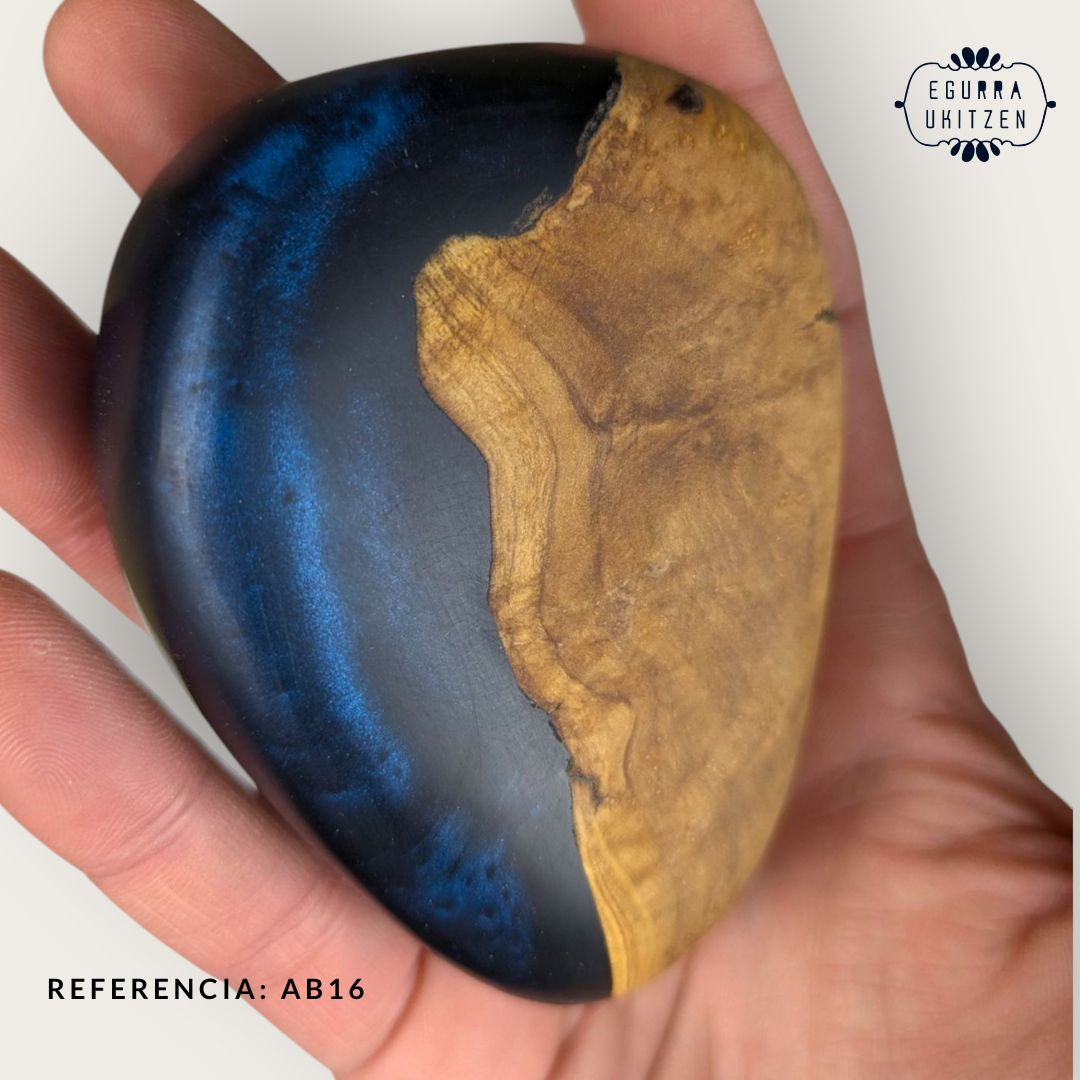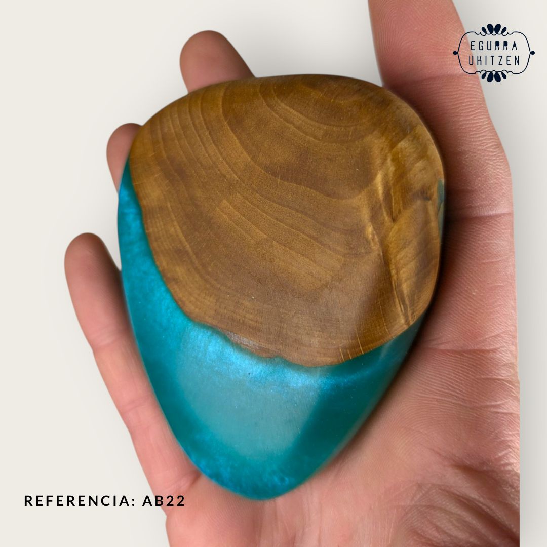 Elegimos cuidadosamente cada pieza de madera, generamos diferentes formas y mezclamos con resina y diferentes tintes de color.