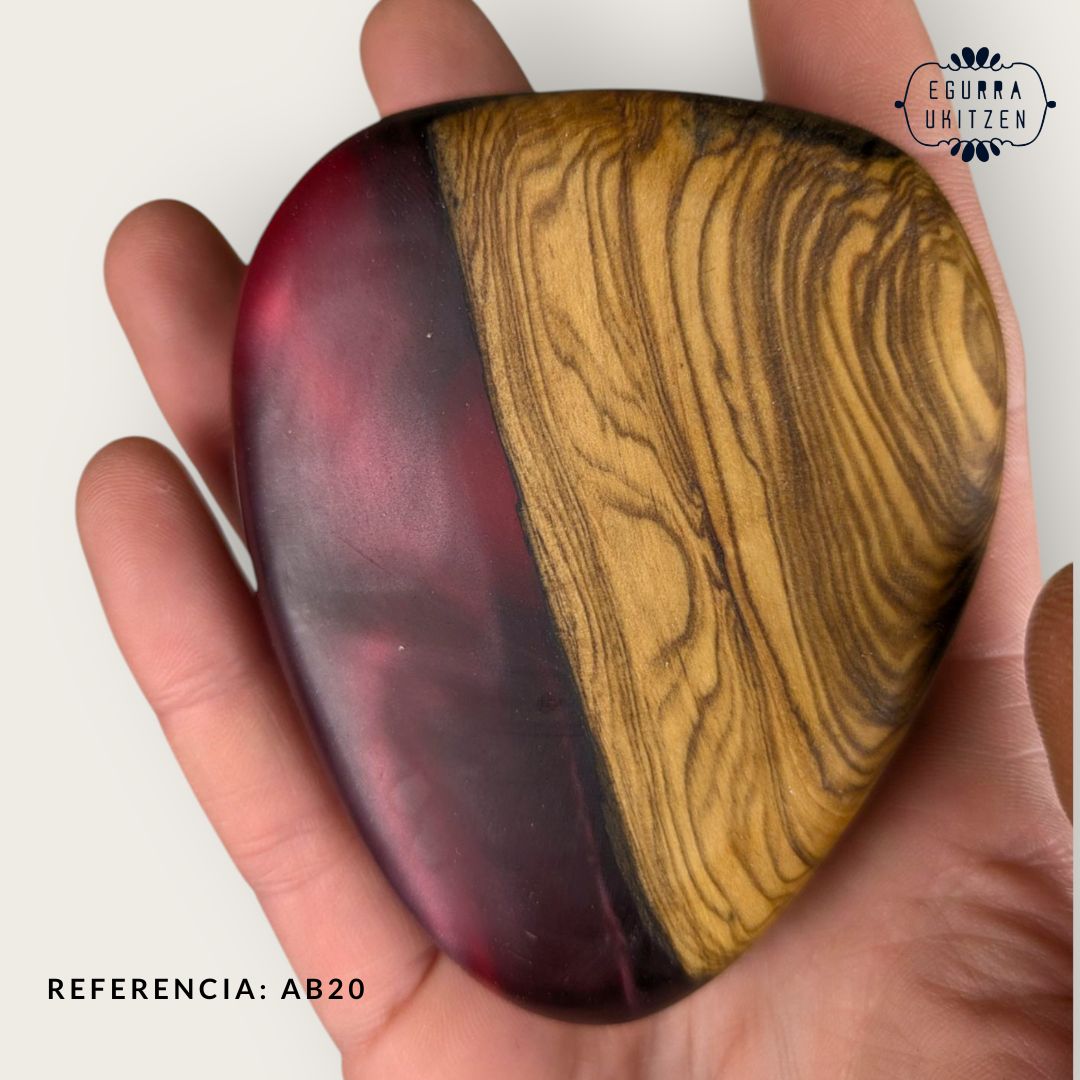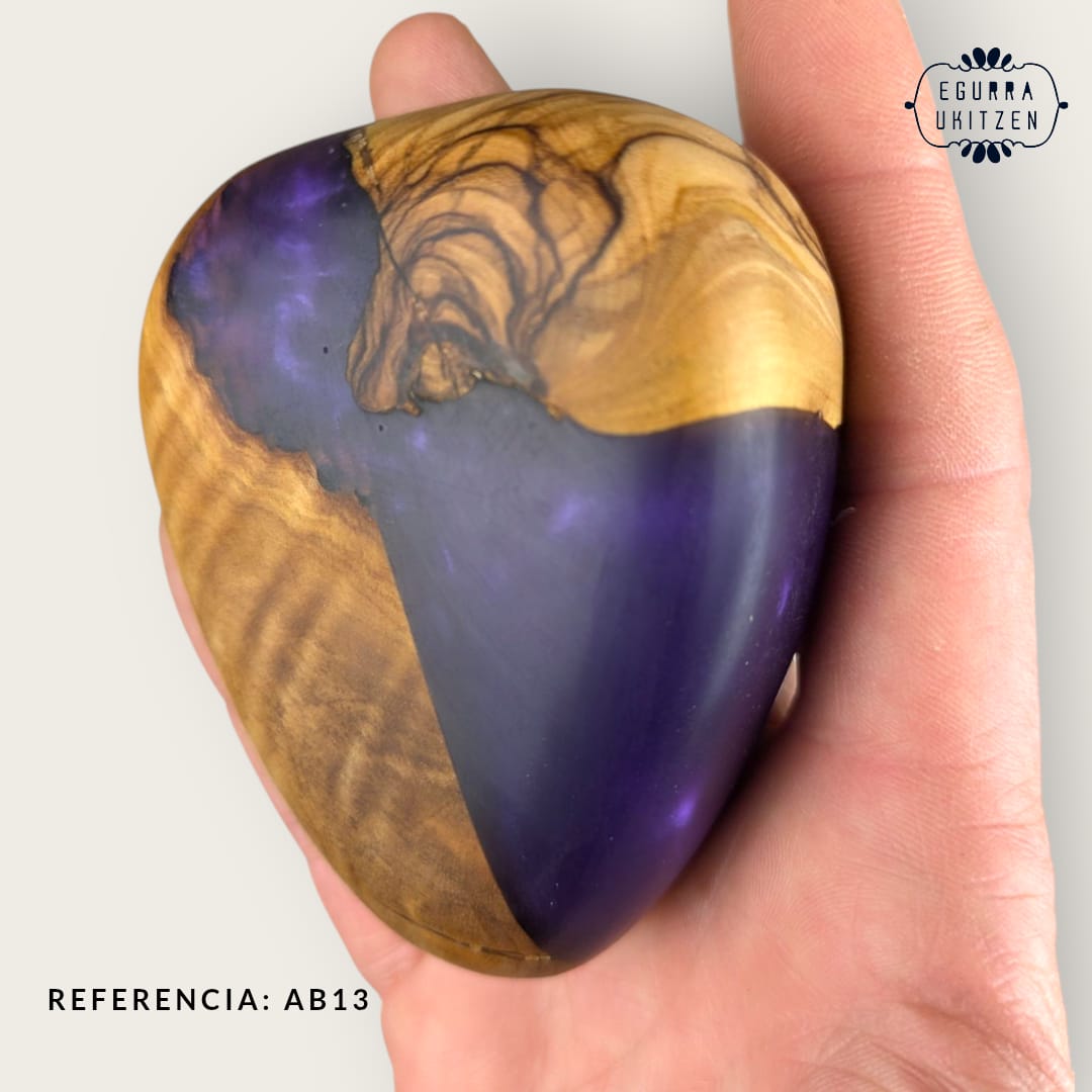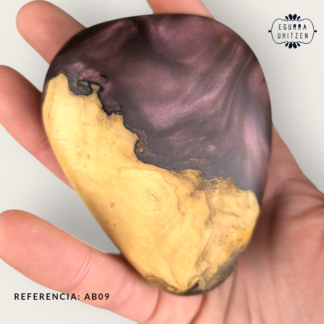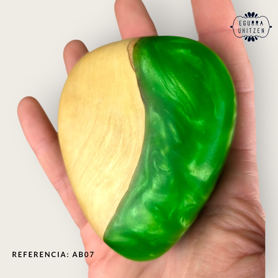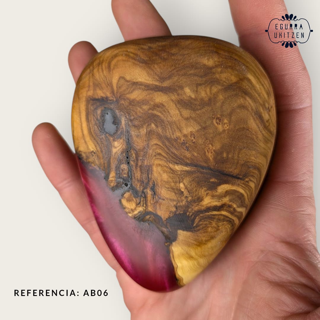 Elegimos cuidadosamente cada pieza de madera, generamos diferentes formas y mezclamos con resina y diferentes tintes de color.