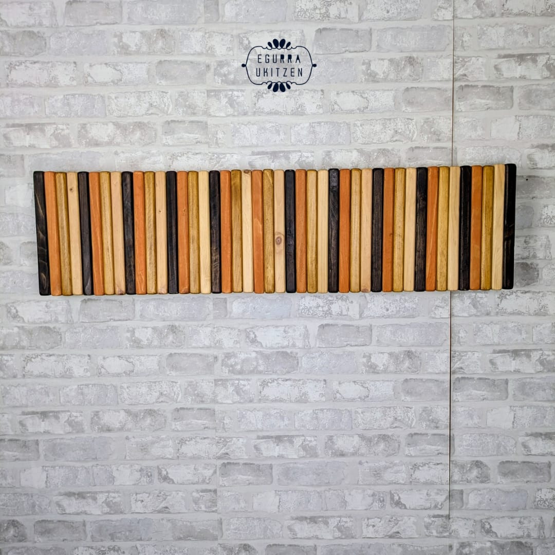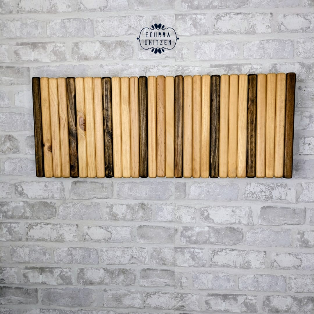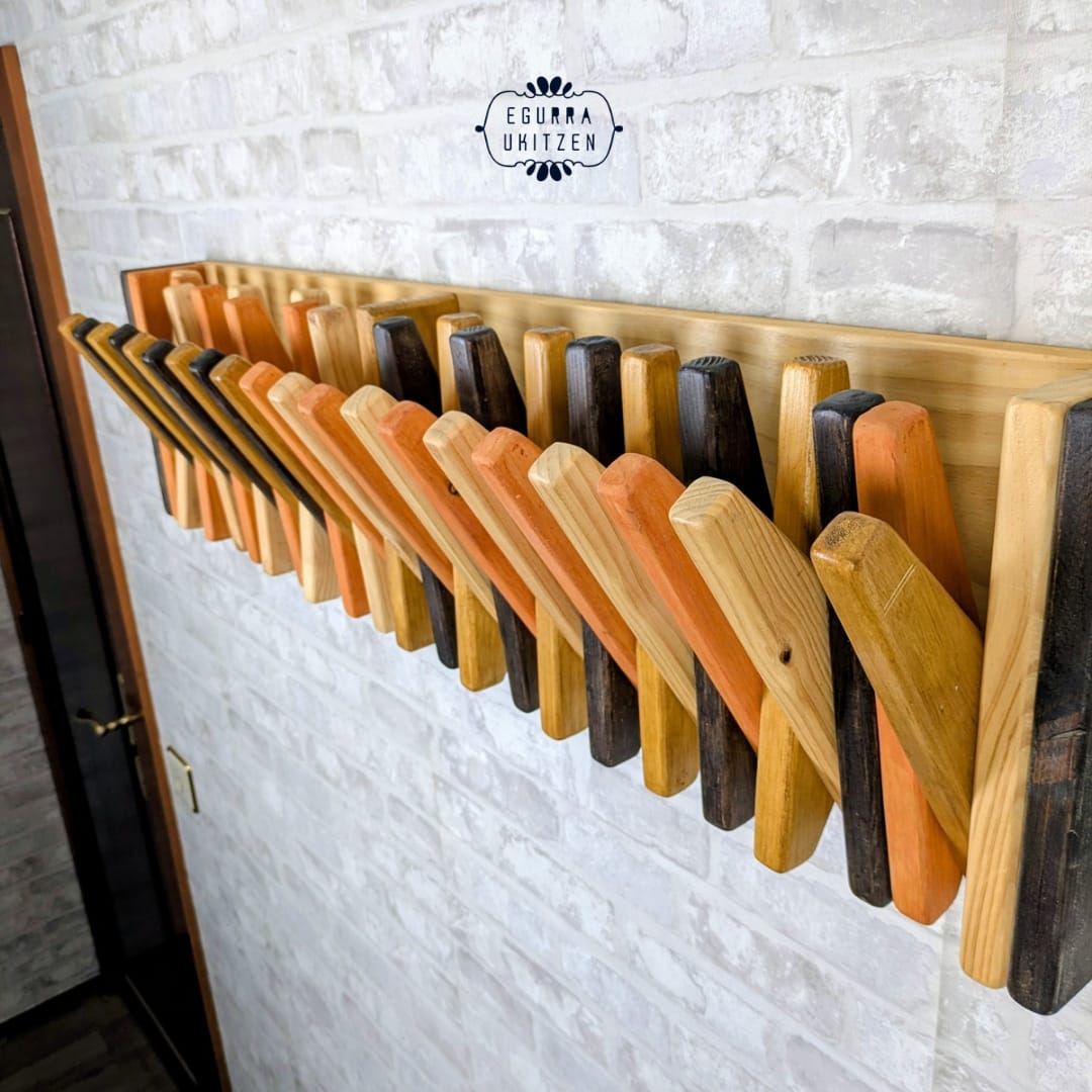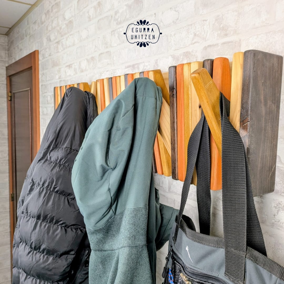 Se realiza totalmente a medida, adaptándose al espacio disponible y al número de colgadores necesarios. Además, puedes elegir el color o acabado que mejor encaje con tu estilo: natural, tonos claros, envejecidos o más oscuros, siempre respetando la belleza de la madera.