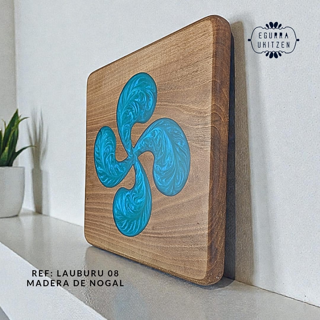 Cada pieza es cuidadosamente elaborada a mano, asegurando la más alta calidad y atención al detalle en cada paso del proceso. Ya sea como un regalo especial o para embellecer tu propio hogar, nuestros cuadros de madera con Lauburu relleno de resina son una expresión auténtica de la cultura vasca que perdurará por generaciones.